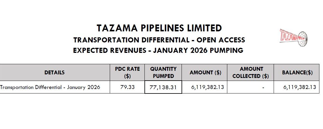 TRANSPORTATION DIFFERENTIAL – OPEN ACCESS EXPECTED REVENUES – JANUARY 2026 PUMPING Feb 19, 2026 | Uncategorized EXPECTED REVENUE – PDC 15.02.26Download