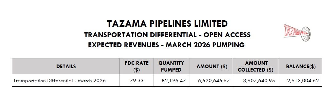 TRANSPORTATION DIFFERENTIAL – OPEN ACCESS EXPECTED REVENUES – MARCH 2026 PUMPING Apr 20, 2026 | News, Uncategorized EXPECTED REVENUE – TDC 20.04.26 March 2026Download